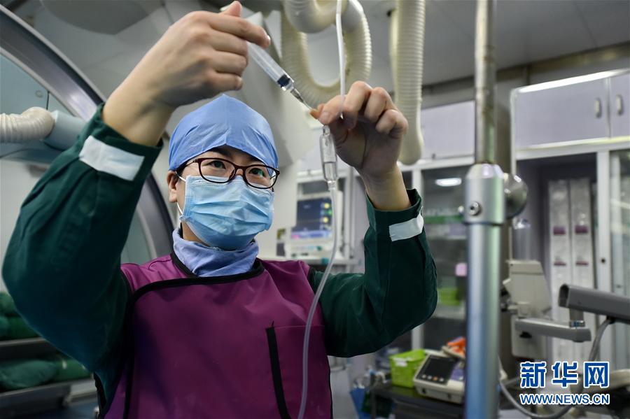 5月11日,山西省太原市中心醫(yī)院心內(nèi)科導(dǎo)管室護(hù)士張娣在照顧病患。 -