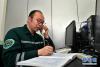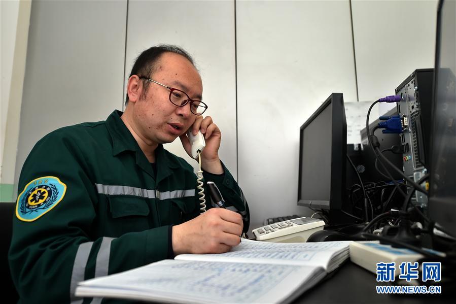 5月11日,許鵬飛在太原市120急救中心接聽(tīng)急救電話。 -