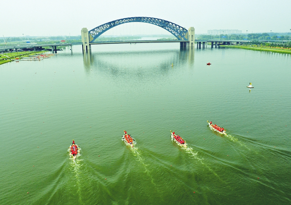 6月13日,太原市水上運動中心,4支龍舟正奮力沖向終點。當日,2021太原汾河龍舟公開賽拉開帷幕,比賽分為公開組和社會組,來自全國的8支高水平龍舟隊角逐公開賽4項桂冠,來自省城的12支龍舟愛好者隊在比賽中一決高低。龍舟公開賽今年是第三個年頭,已成為端午節(jié)省城的一項重要體育文化活動。(記者李兆民攝)