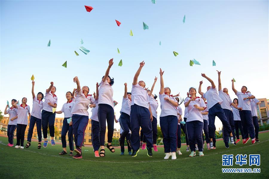 6月2日,河北省衡水市冀州中學(xué)高三學(xué)生放紙飛機(jī),舒緩心情。