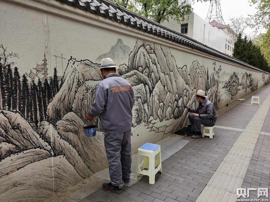 “以前從這兒路過,都是急匆匆的,如今墻體彩繪畫讓人眼前一亮,看著舒心,忍不住就想多欣賞一會兒!笔忻肖永利一邊注視著墻上的山水畫,一邊稱贊道。