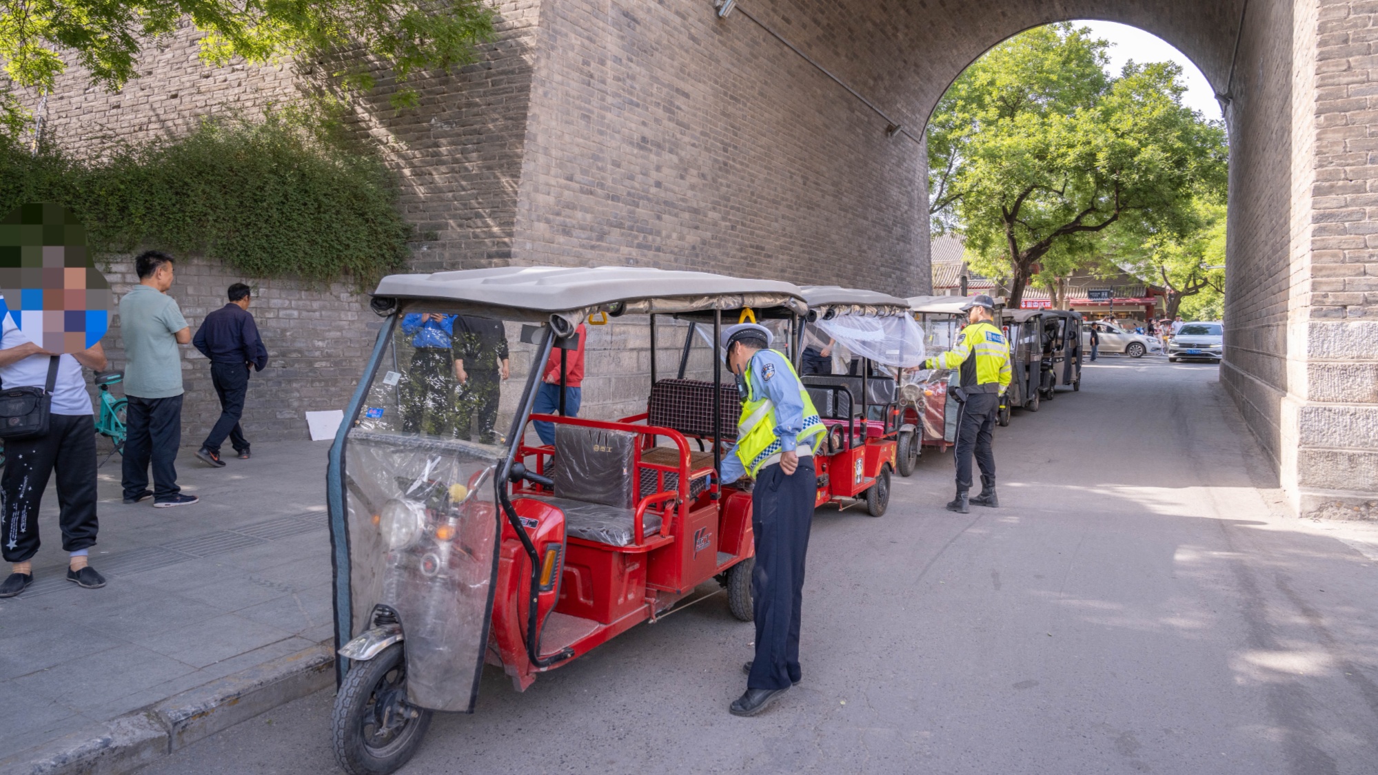 4月29日下午3點(diǎn),西安市公安交警在長(zhǎng)樂門城墻下開展了針對(duì)兩三輪車無(wú)牌無(wú)證、闖燈逆行、非法載客等重點(diǎn)交通違法行為的專項(xiàng)整治行動(dòng)。