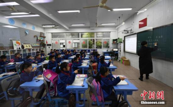 資料圖:小學(xué)生們正在上課。中新社記者 王剛 攝