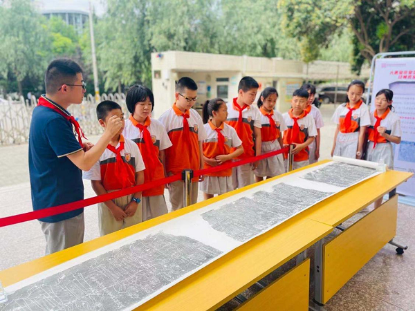 活動現(xiàn)場,學生們近距離觀看文物拓。ㄑ霃V網發(fā) 高新區(qū)供圖)