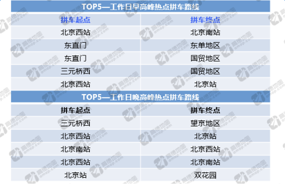 北京工作日早晚高峰熱點(diǎn)拼車路線