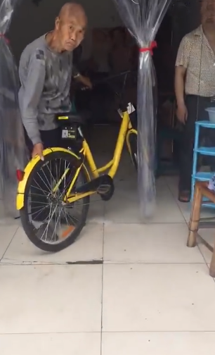 女子繼續(xù)勸阻:“這是我們掃的……”“這是共享的,這不是你的車…”然而車已經(jīng)被老人推到了屋子最里面。