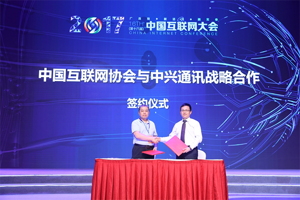 中國互聯(lián)網(wǎng)協(xié)會(huì)秘書長(zhǎng)盧衛(wèi)與中興通訊股份有限公司高級(jí)副總裁兼政企中國事業(yè)部總經(jīng)理朱永濤簽署戰(zhàn)略合作協(xié)議