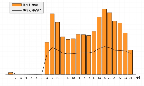 移動(dòng)互聯(lián)網(wǎng)的廣泛應(yīng)用,使得像滴滴出行這樣的平臺(tái)上拼車比例大幅提高。如上圖所示,拼車行為具有明顯的早晚高峰趨勢(shì),而且早晚高峰拼車訂單百分比也略高于其他時(shí)間段?梢,在出行需求較旺盛時(shí),人們更傾向于選擇拼車。