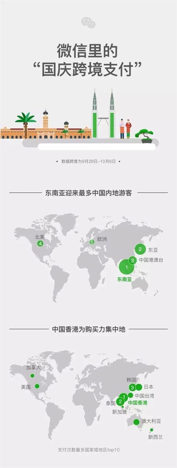 國慶中秋長假結(jié)束之后,微信官方發(fā)布了一份“國慶微信跨境支付報告”,全方位展示了國人境外消費圖景。