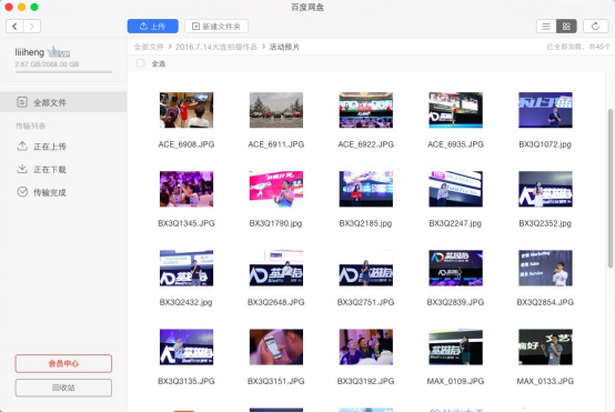 此外,為了防止資料遺失,我還將近期拍攝的作品上傳到百度網(wǎng)盤進行了資料備份,本來還擔心資料太多害怕內(nèi)存不夠,后來看見普通用戶擁有2048GB的存儲容量后我就放心了。所有資料,無論是大文件、文件夾還是壓縮文件包均可通過百度網(wǎng)盤Mac版的客戶端直接進行上傳,上傳的平均速度依舊十分穩(wěn)定和流暢。
