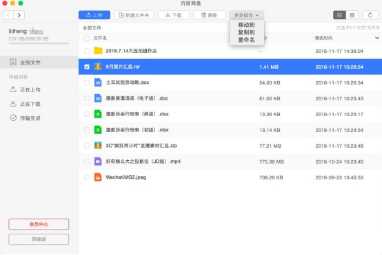 由于我之前使用Windows系統(tǒng)時也用百度網(wǎng)盤管理照片,所以帳號不用重新注冊,直接登錄即可。打開界面后我發(fā)現(xiàn),之前通過任何端口上傳到百度網(wǎng)盤的資料都會有所顯示,只需要在目標文件之前打鉤,然后點擊下載便可將選中文件下載到Mac上。整個下載過程非常穩(wěn)定和順暢,并沒有卡頓和中途重新下載的情況出現(xiàn)。
