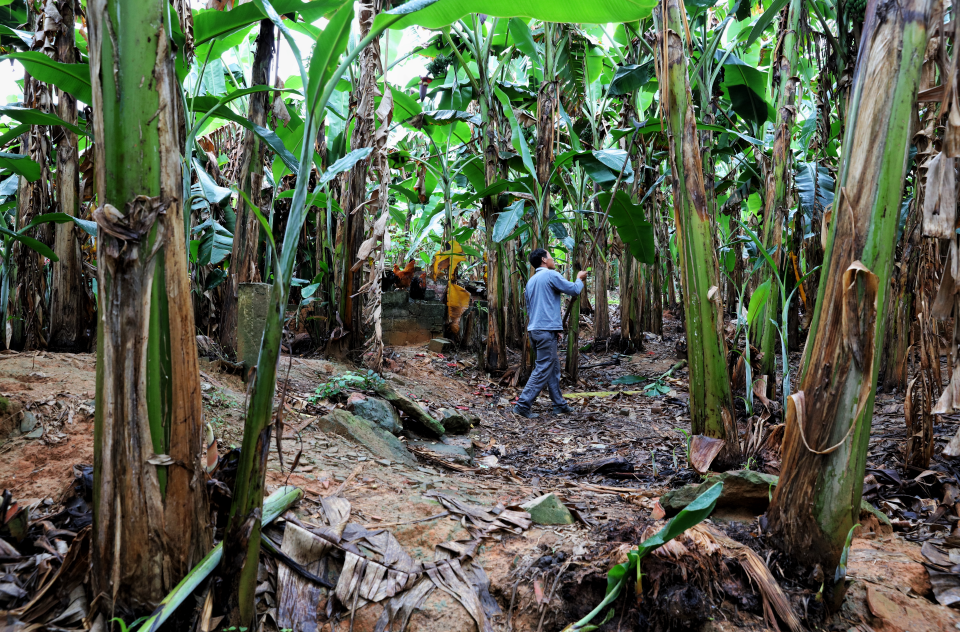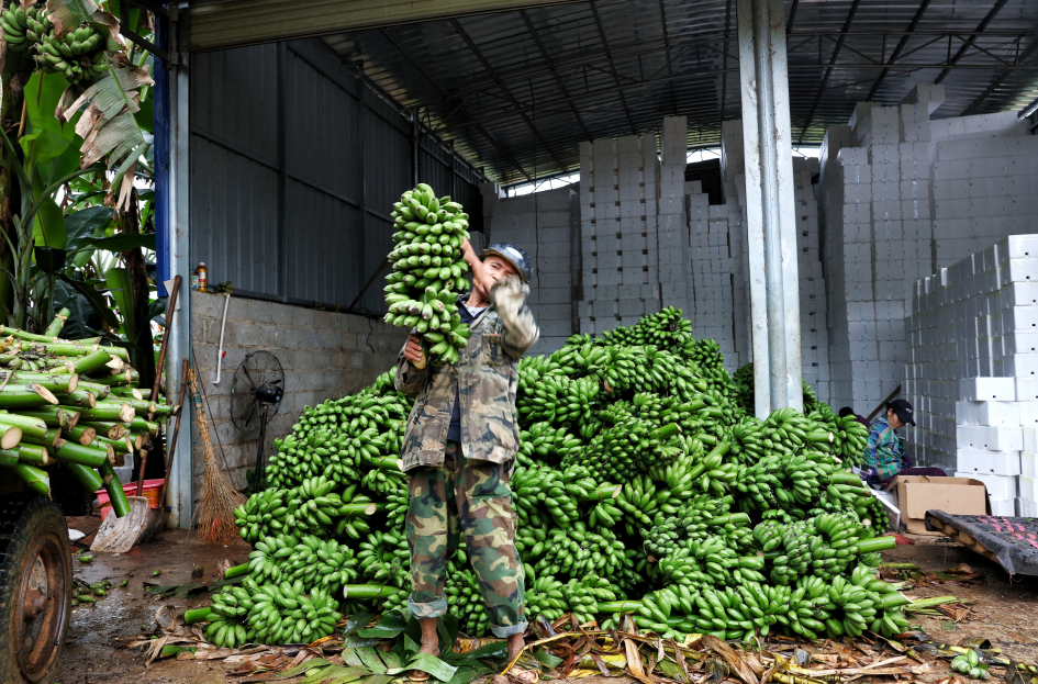 自從小米蕉大火后,不少村民都過上了早上砍蕉白天打包的“雙工種”生活,一天滿工時的收入接近300元。(攝影:安舜)