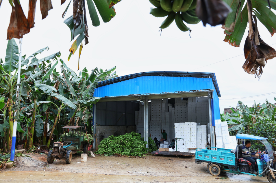 一個村的生活圖景和主要經(jīng)濟(jì)來源,都圍繞著這個倉庫展開。村里大多數(shù)農(nóng)戶,都有20畝至40畝左右的小米蕉田,隨著小米蕉身價的攀升以及打包等工種的需求,不少村民的年收入超過了十幾萬,是電商入村以前的三四倍。