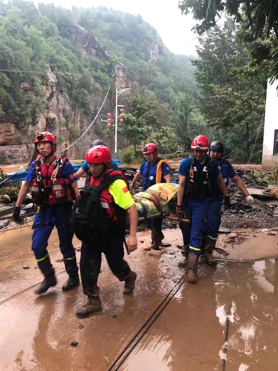 神鷹救援隊(duì)在河南滎陽緊急轉(zhuǎn)移群眾和傷者。