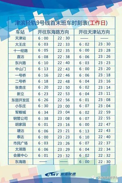 津?yàn)I輕軌9號(hào)線運(yùn)行時(shí)刻表(工作日)