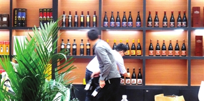 圖為部分展位開始陳列酒品。本報(bào)記者 錢進(jìn) 攝