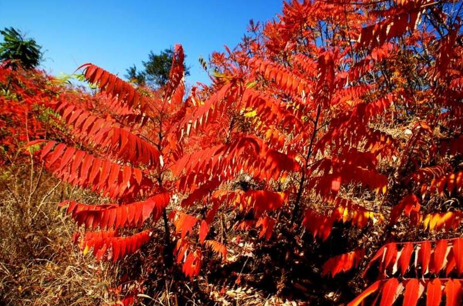 火炬樹,科名漆樹科,為漆樹科鹽膚木屬落葉小喬木。奇數(shù)羽狀復(fù)葉互生,長圓形至披針形,九月下旬葉色變紅。