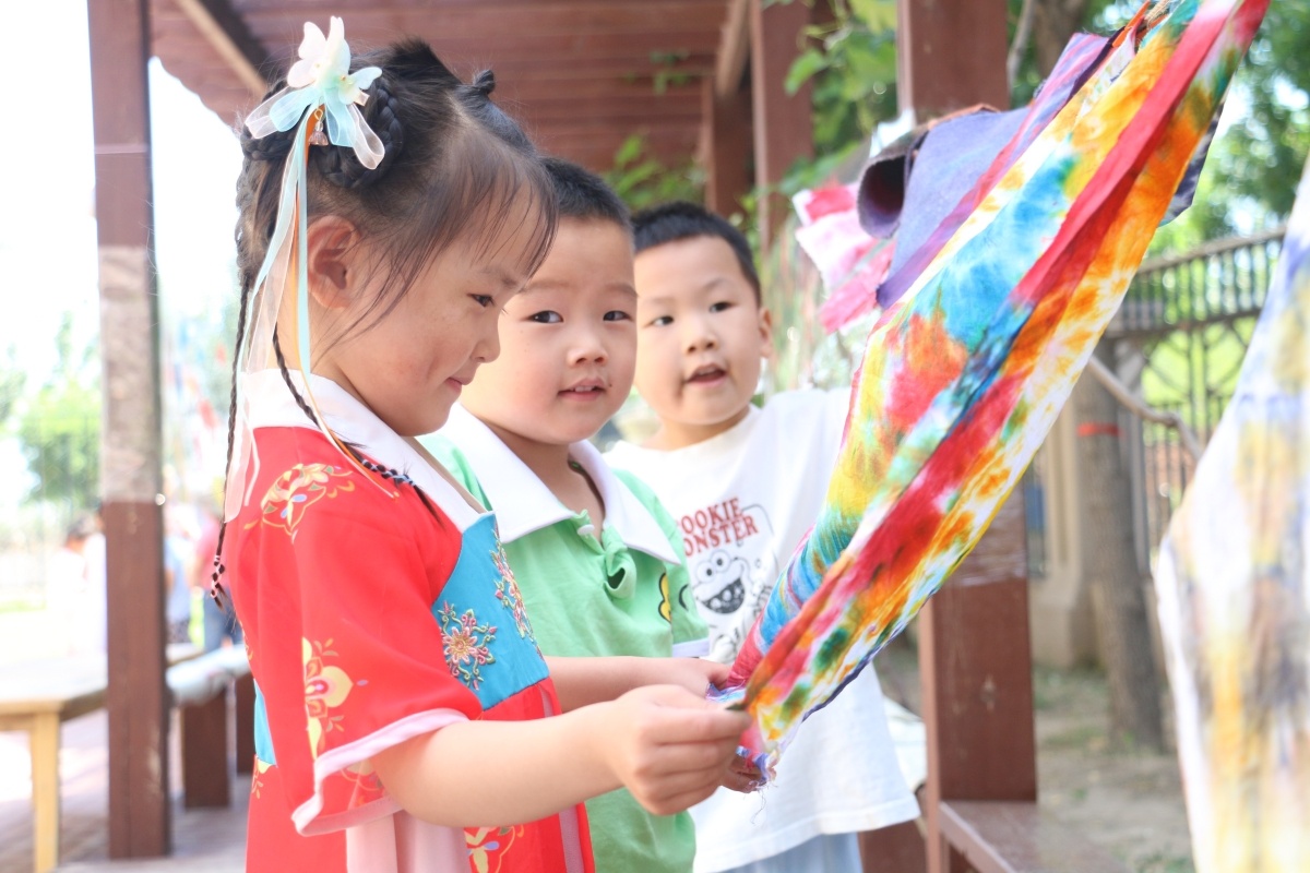 日前,天津市北辰區(qū)溫雅幼兒園的小朋友們?cè)诶蠋煹闹笇?dǎo)下,感受中華民族傳統(tǒng)的蠟染技巧。