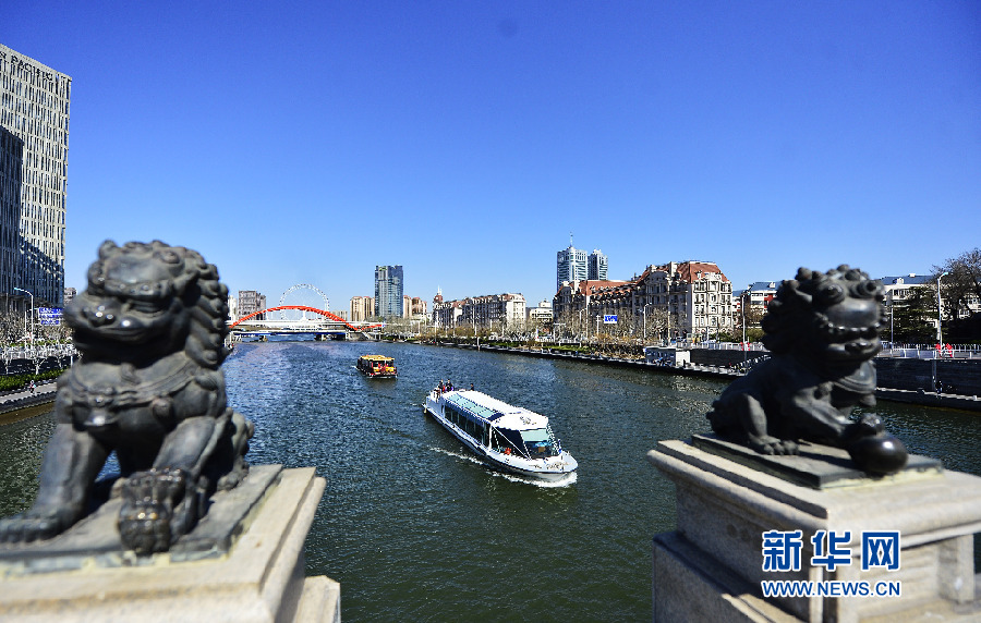 圖為3月22日海河游船開航船隊(duì)駛?cè)牒:。新華網(wǎng)發(fā)(史淞予 攝)