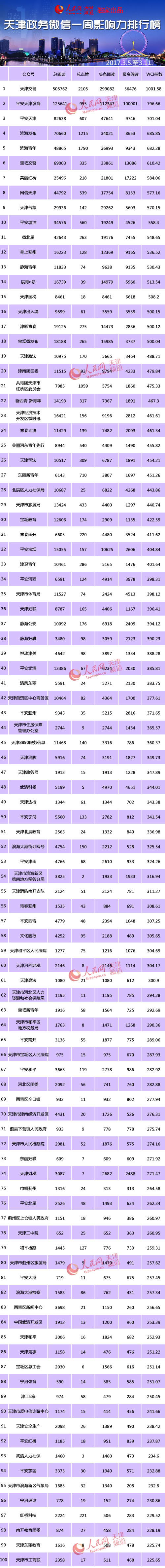 天津政務(wù)微信影響力排行榜第二十八期前100名