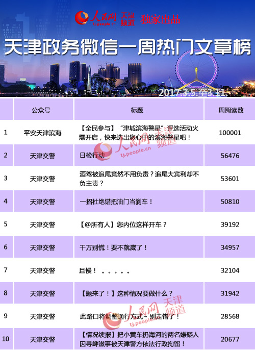 天津政務(wù)微信熱門文章榜第二十八期前十名