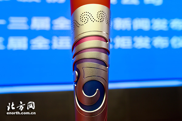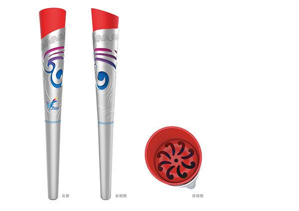 據(jù)第十三屆全運會視覺設計工作室負責人、天津美術學院教授郭振山介紹,本屆全運會火炬設計有以下兩個特點:一是圖形元素內(nèi)涵豐富,采用了浪花的圖案展示出了天津的地方特征,同時,動態(tài)的造型又蘊含了巨大的力量,展示出運動的內(nèi)涵,浪花與祥云的融合傳遞出了中國的概念,也傳遞出吉祥和諧盛會的內(nèi)涵;二是綜合材料工藝彰顯出時代的特征,火炬采用銀白色鏤空工藝及藍紫色漸變色的處理,賦予了火炬極強的時代氣息與特征。