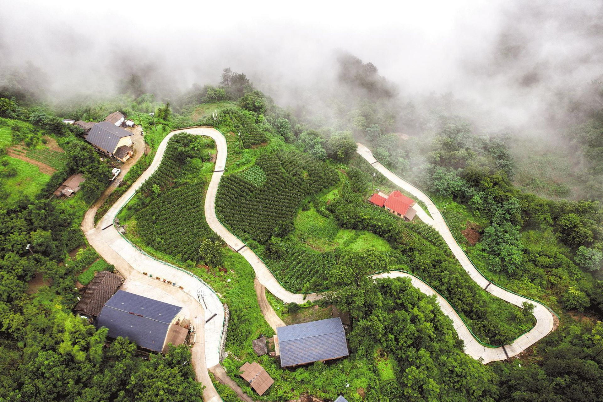 十堰市房縣野人谷鎮(zhèn)境內(nèi)的“十回首”盤山公路。(湖北日?qǐng)?bào)全媒記者 陳勇 攝)