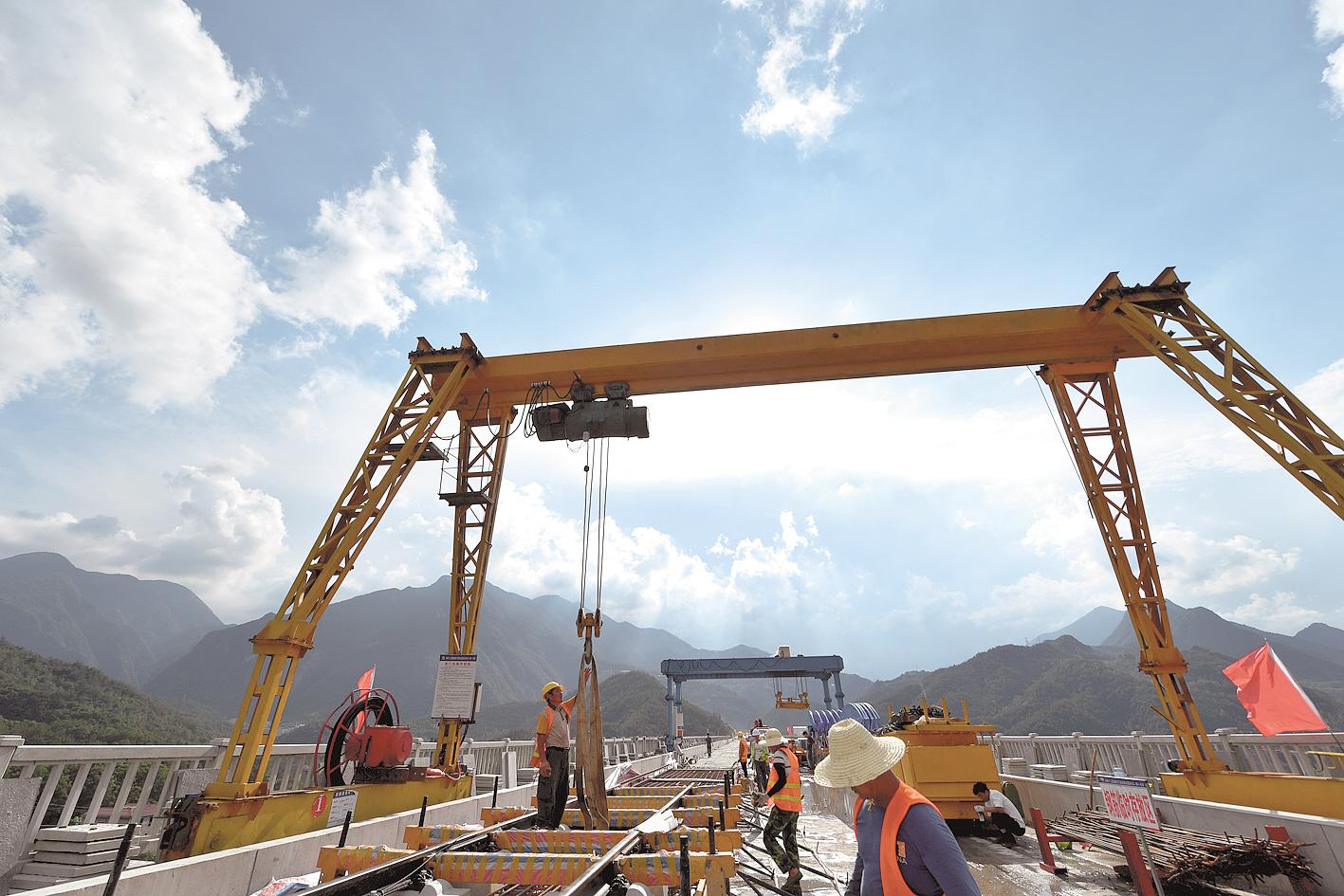 工人在保神高速公路后坪互通樞紐加緊建設(shè)。全長(zhǎng)43.3公里的保神(保康至神農(nóng)架)高速是湖北省“十三五”重點(diǎn)規(guī)劃項(xiàng)目,也是神農(nóng)架林區(qū)通往外界的首條高速公路。(湖北日?qǐng)?bào)全媒記者 田悅 通訊員 楊韜 攝)