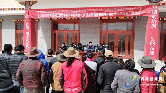 扎河鄉(xiāng)內(nèi)轉(zhuǎn)型轉(zhuǎn)崗的牧民正在進行民族手工藝培訓(xùn)。