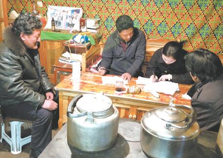 玉成入戶走訪。治多縣委組織部供圖