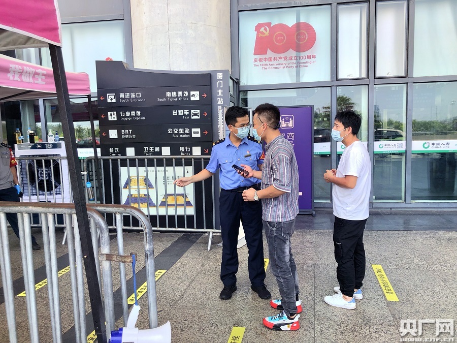 “請(qǐng)進(jìn)站旅客戴好口罩,打開(kāi)‘閩政通’點(diǎn)擊健康碼,間隔1米有序進(jìn)站……”7月31日早晨7點(diǎn),廈門(mén)北站值班站長(zhǎng)吳振斌提前來(lái)到南進(jìn)站口上崗值守,不斷地提醒進(jìn)站旅客遵守防疫規(guī)定,并協(xié)助查驗(yàn)健康碼。為了保障旅客出行安全,廈門(mén)北站配合當(dāng)?shù)匦l(wèi)生防疫部門(mén)建立了車(chē)站防疫檢測(cè)點(diǎn),組織旅客有序排隊(duì),逐一測(cè)量體溫,查驗(yàn)健康碼,宣講防控知識(shí)。