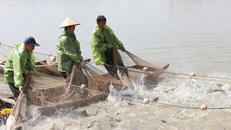 碧波蕩漾、水光瀲滟的湖面上,魚躍人歡,一片豐收喜悅。
