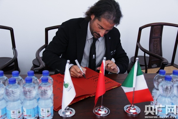 意大利溫泉協(xié)會主席、阿巴諾市市長盧卡·克勞狄奧簽字留念