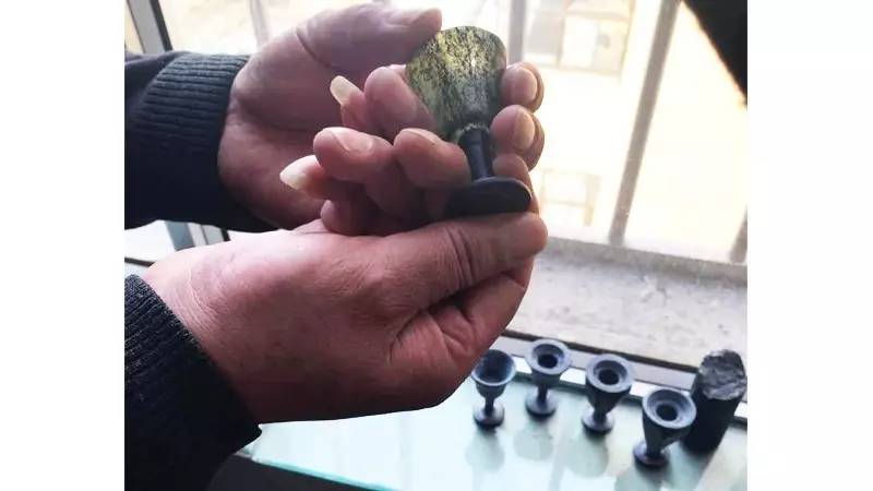 夜光杯從選料到最后的成品,最快要經(jīng)過33個工序,要求工人心靈手巧,一方面眼睛要看,另一方面還要靠手上的感覺來打磨,初學的時候很容易把產(chǎn)品做破。
