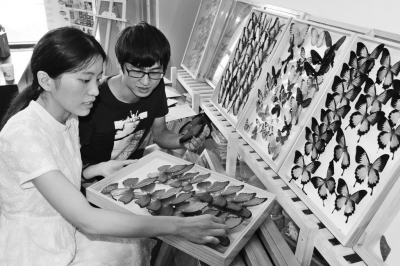 兩年后,彭華的女友呂曼曼從西北農林科技大學研究生畢業(yè)后,緊隨彭華也來到宿城區(qū)雙莊鎮(zhèn)成為一名大學生村官。她為彭華加工制作的工藝品命名為“古枼蝴蝶藝術品”,并為產品申請了注冊商標,還拿出自己的3萬元“壓箱錢”,把“古枼蝴蝶藝術品”搬上了互聯(lián)網,在淘寶和阿里巴巴上開設了2個網店,創(chuàng)造性地在淘寶上開展蝴蝶標本租賃業(yè)務。現(xiàn)如今,淘寶店已經小有名氣,積攢了很多忠實客戶,每個月交易額都在3萬元以上,可算是蝴蝶標本網店里的佼佼者。