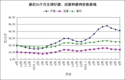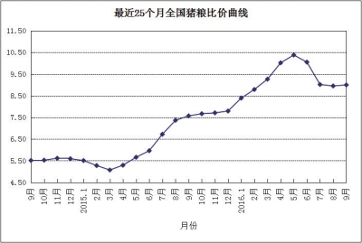 據(jù)對(duì)全國(guó)500個(gè)農(nóng)村集貿(mào)市場(chǎng)畜產(chǎn)品和飼料價(jià)格定點(diǎn)監(jiān)測(cè),2016年9月份,生豬產(chǎn)品、飼料產(chǎn)品、羊肉價(jià)格下跌,主要家禽產(chǎn)品、牛肉、生鮮乳價(jià)格上漲。按農(nóng)貿(mào)市場(chǎng)監(jiān)測(cè)口徑,本月豬糧比價(jià)為9.00:1,比上月上升0.05個(gè)點(diǎn)。