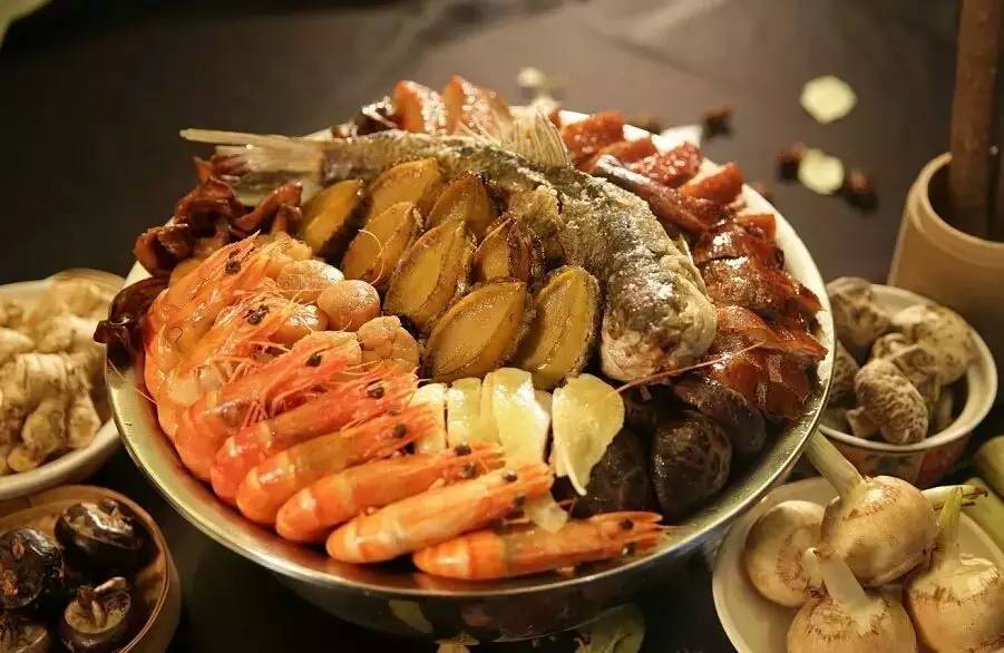 盆菜是香港人在喜慶時(shí)節(jié)的必備品,當(dāng)年香港新界的圍村鄉(xiāng)族每逢重要的日子,主人家就會(huì)制作盆菜宴請(qǐng)鄉(xiāng)親,后來演變?yōu)橐源汗?jié)時(shí)節(jié)為主的年菜形式。過年時(shí),一家人圍坐在一起,一邊品嘗豐盛且熱氣騰騰的盆菜,一邊閑話家常,其樂融融。