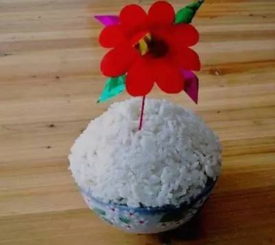除夕,在天色未晚之前,家家都要準(zhǔn)備春飯。春飯就是在盛得尖尖的米飯上插上剪紙的“春”字。因?yàn)殚}南話“春”與“!敝C音,寓意為“歲歲有余糧,年年食不盡”。