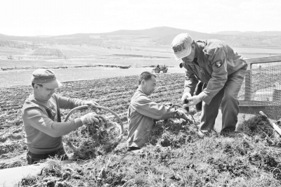 圖為在扎蘭屯市成吉思汗鎮(zhèn)馬家子村一個山坡上,扎蘭屯市煜軒中草藥種植農(nóng)民專業(yè)合作社的社員們正在播種“百畝”蒼術試驗田。紀明國文/圖
