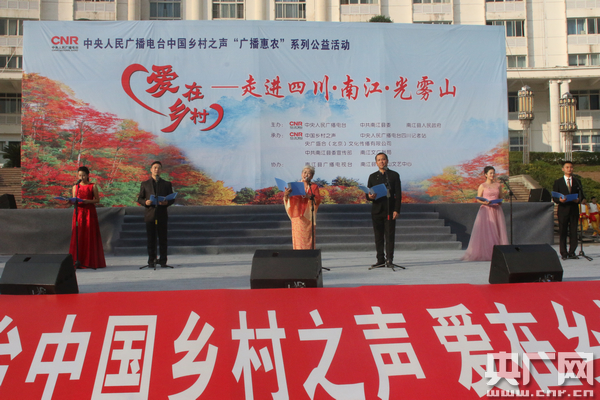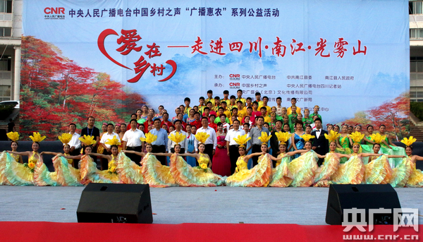 央廣網(wǎng)北京10月22日消息 據(jù)中國(guó)鄉(xiāng)村之聲報(bào)道,10月21日,中央人民廣播電臺(tái)中國(guó)鄉(xiāng)村之聲“廣播惠農(nóng)·愛(ài)在鄉(xiāng)村”公益活動(dòng)走進(jìn)四川省南江縣,除虹云、于乃久、李進(jìn)等全國(guó)著名的演藝界明星為現(xiàn)場(chǎng)近萬(wàn)名群眾送去文化大餐外,來(lái)自北京的權(quán)威醫(yī)療、畜牧業(yè)、茶葉專(zhuān)家也為農(nóng)民朋友送去醫(yī)療農(nóng)技服務(wù);顒(dòng)中,中央人民廣播電臺(tái)副總編輯史敏為南江縣“廣播惠農(nóng)”工程示范縣、“愛(ài)在鄉(xiāng)村”示范點(diǎn)授牌。中央人民廣播電臺(tái)副總編輯史敏、南江縣縣委書(shū)記劉凱、中央人民廣播電臺(tái)四川記者站站長(zhǎng)劉長(zhǎng)江、中央人民廣播電臺(tái)社教節(jié)目中心副主任陶煒參與活動(dòng)。