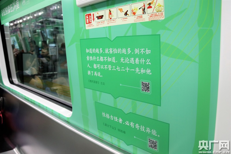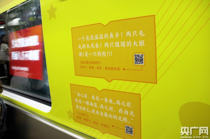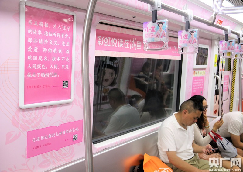央廣網(wǎng)杭州8月8日消息(記者傅煒如)最近如果你搭乘杭州地鐵2號線,也許會遇見一輛文藝的列車,六節(jié)不同顏色的車廂內(nèi),摘錄著國內(nèi)外名著的經(jīng)典選段,就像一本絢麗的立體書籍,讓你置身于書的世界……