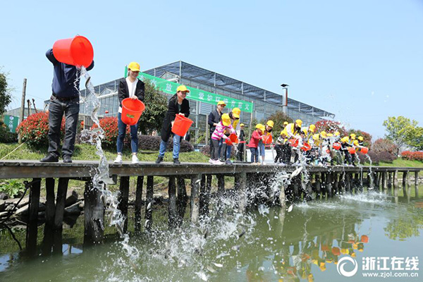 江蘇:蘇州舉行第四屆公益放魚活動(dòng) 投放魚苗潔凈太湖水,4月8日,第四屆“保護(hù)母親湖 我們?cè)谛袆?dòng)”潔凈太湖水公益放魚活動(dòng)在江蘇蘇州舉行,志愿者在活動(dòng)中投放魚苗。潔凈太湖水放魚公益活動(dòng)已持續(xù)4年,累計(jì)投放花白鰱魚、鲴魚苗18萬(wàn)尾。