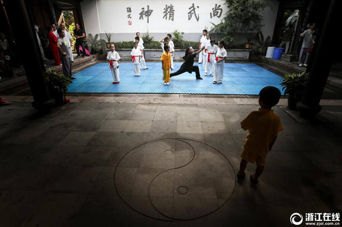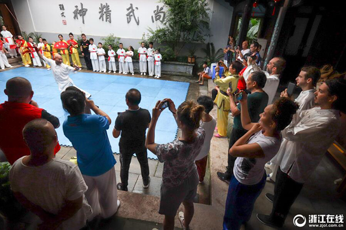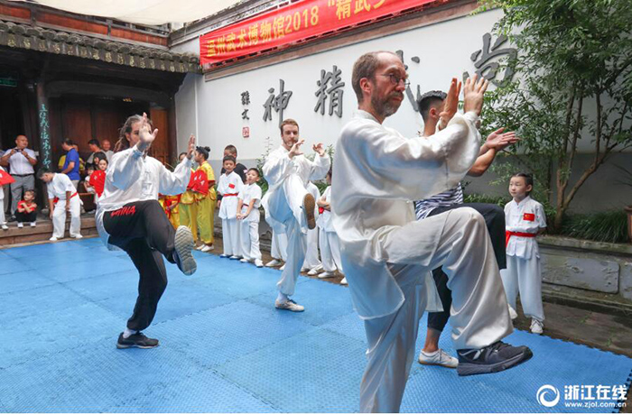 8月15日,來(lái)中國(guó)參加武術(shù)文化交流活動(dòng)的12名法國(guó)武術(shù)隊(duì)隊(duì)員走進(jìn)溫州武術(shù)博物館,體驗(yàn)中國(guó)傳統(tǒng)武術(shù)文化,與在這里參加公益武術(shù)夏令營(yíng)活動(dòng)的孩子和拳師們一起切磋武藝,共同分享武術(shù)運(yùn)動(dòng)帶來(lái)的健康和快樂(lè)。