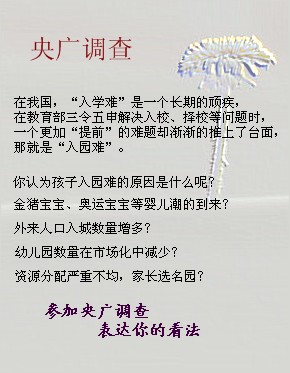 嬰兒潮加重“入園難”:據(jù)資料顯示,2007年至2009年,北京市的新生兒有41.575萬(wàn)人。他們將從2010年開(kāi)始陸續(xù)地進(jìn)入幼兒園。而從2009 年北京市合法幼兒園的在園人數(shù)來(lái)看,北京能提供的幼兒園學(xué)位數(shù)約為24.8萬(wàn)人。這意味著,北京的幼兒園學(xué)位缺口,約為17萬(wàn)名。