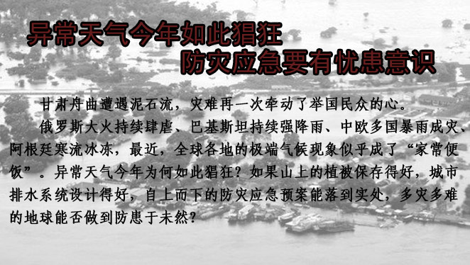 我們的憂患意識是否足夠?我們對于防洪治水的智與力的投入是否足夠?在這場已經(jīng)到來而且必將持續(xù)一段時日的洪澇之災面前,廣東省上下動員、積極調(diào)度、緊張應戰(zhàn),自然會有值得稱許的成績涌現(xiàn)。不過居安思危,而危時思安,待得這短兵相接的搏斗之后,但愿主流聲音不是急著去慶功評獎,我們懸起的心也不要急著先放下來……<詳細>