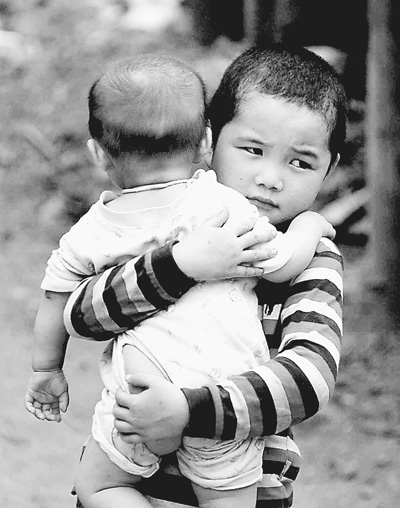 只有6歲的小男孩姚國亮,懷里緊緊抱著1歲多的妹妹姚淑娟,目光平靜地走來。去年8月,舟曲特大山洪泥石流暴發(fā)后,這張新聞?wù)掌钊藙尤荩闪酥矍谀菆鰹?zāi)難中的經(jīng)典影像之一。