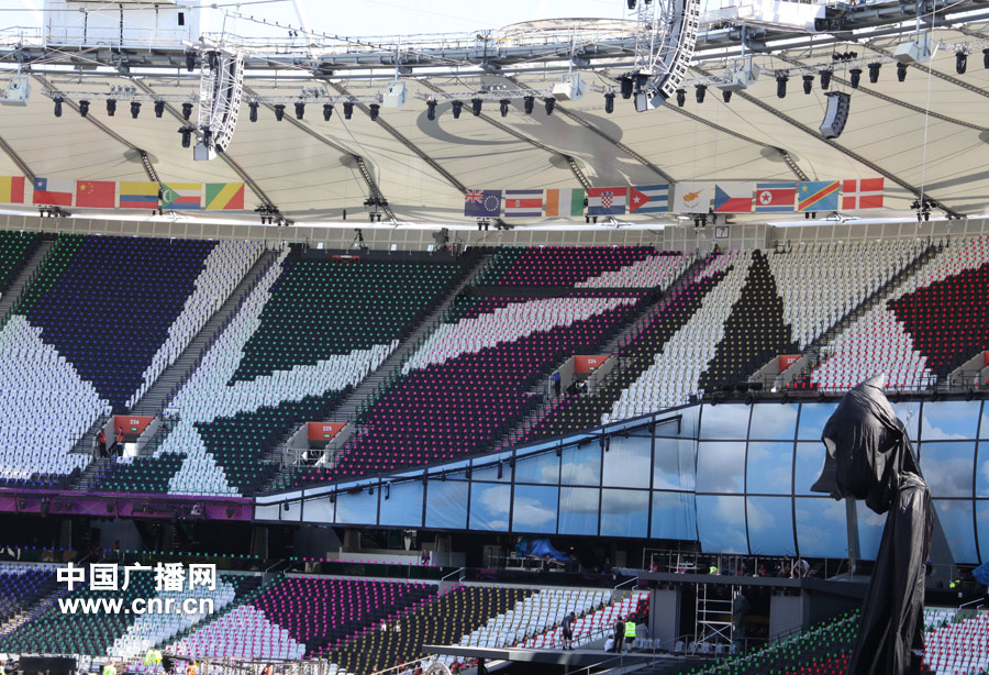 初始我以為為了讓觀眾靠的更加舒服,實(shí)際上,它是由9個(gè)可變化顏色的小燈泡組成。于是,當(dāng)總導(dǎo)演需要時(shí),整個(gè)倫敦碗的觀眾席都可呈現(xiàn)出一副波瀾壯闊、五顏六色的音樂的奏章。(中廣網(wǎng)特派記者束偉發(fā)自倫敦)