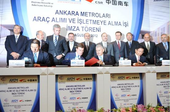 上圖:8月13日,中國(guó)南車株機(jī)公司獲簽25億元人民幣的土耳其安卡拉地鐵車輛項(xiàng)目合同。