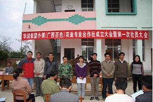 在農(nóng)村改革實施聯(lián)產(chǎn)承包責(zé)任制30年后的今天,不可否認(rèn)農(nóng)民的個人收入已經(jīng)有了大幅提高,但是希望小鎮(zhèn)要能夠可持續(xù)發(fā)展卻面臨一個突出的問題:集體經(jīng)濟(jì)缺失,公共積累幾乎為零,這也是當(dāng)前中國農(nóng)村發(fā)展中普遍存在的突出問題。發(fā)展壯大小鎮(zhèn)集體經(jīng)濟(jì),在農(nóng)民個人收入增長的同時逐步實現(xiàn)公共積累的同步增長并保持小鎮(zhèn)能夠可持續(xù)發(fā)展,是華潤希望小鎮(zhèn)幫扶工作要實現(xiàn)的最終目標(biāo)。農(nóng)民專業(yè)合作社華潤希望小鎮(zhèn)項目啟動以后,經(jīng)過一段時間的產(chǎn)業(yè)幫扶實踐,農(nóng)民專業(yè)合作社這一組織形式被正式確定為華潤希望小鎮(zhèn)產(chǎn)業(yè)幫扶和發(fā)展農(nóng)村集體經(jīng)濟(jì)的載體和平臺。設(shè)立農(nóng)民專業(yè)合作社,不僅是構(gòu)建一個生產(chǎn)組織,也是重構(gòu)鄉(xiāng)村社會組織與發(fā)展鄉(xiāng)村民主的重要內(nèi)容。農(nóng)民專業(yè)合作社按照自愿參加、自愿入股的原則,建立生產(chǎn)合作社組織,形成經(jīng)濟(jì)集體組織模式,發(fā)展新型農(nóng)村集體經(jīng)濟(jì)。百色華潤希望小鎮(zhèn)開工建設(shè)以后,溫鐵軍教授就帶領(lǐng)他的學(xué)生們以農(nóng)民專業(yè)合作社、現(xiàn)代生態(tài)農(nóng)業(yè)和農(nóng)村合作金融為主題,在田間地頭和鄉(xiāng)村學(xué)校對小鎮(zhèn)村民進(jìn)行了一系列別開生面的培訓(xùn)。擔(dān)任培訓(xùn)老師的不光有“三農(nóng)問題”的專家學(xué)者,而且還有在安徽、吉林等地已經(jīng)成功組織運(yùn)營過農(nóng)民專業(yè)合作的村官與農(nóng)民,通過宣傳培訓(xùn),小鎮(zhèn)村民真正明白了“合作起來有好處”的道理,農(nóng)民合作社的經(jīng)營理念已經(jīng)在小鎮(zhèn)深入人心。經(jīng)過精心的組織與籌備,百色華潤希望小鎮(zhèn)農(nóng)民專業(yè)合作社于2009年1月19日順利召開成立大會暨第一屆社員大會,每股本金100元,小鎮(zhèn)片區(qū)農(nóng)戶踴躍入社,入社農(nóng)民達(dá)424人,戶入社率85%以上,自籌本金近20萬元;華潤慈善基金也是合作社的法人社員之一,合作社由入社農(nóng)民民主推選的代表擔(dān)任理事,在理事會的民主決策下,合作社有效組織入社農(nóng)戶統(tǒng)一采購農(nóng)資,指導(dǎo)農(nóng)戶進(jìn)行科學(xué)種植和養(yǎng)殖業(yè)生產(chǎn),統(tǒng)一為入社農(nóng)戶的農(nóng)副產(chǎn)品注冊了“澄碧湖”牌商標(biāo),成功組織了小西紅柿、西瓜、生豬等農(nóng)副產(chǎn)品的統(tǒng)購統(tǒng)銷,合作社還與華潤萬家、華潤五豐合資合作經(jīng)營了育苗廠、孵化廠、生活及農(nóng)資超市以及生態(tài)養(yǎng)豬廠,截至到2010年年底,合作社已經(jīng)進(jìn)行了兩次分紅,每股分紅達(dá)到36.29元,收益率和入社率都高居全國農(nóng)民專業(yè)合作社前列。