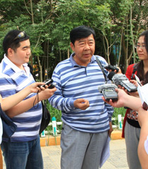 新疆民族語(yǔ)言廣播中心主任帕爾哈提·玉素甫在采訪現(xiàn)場(chǎng)